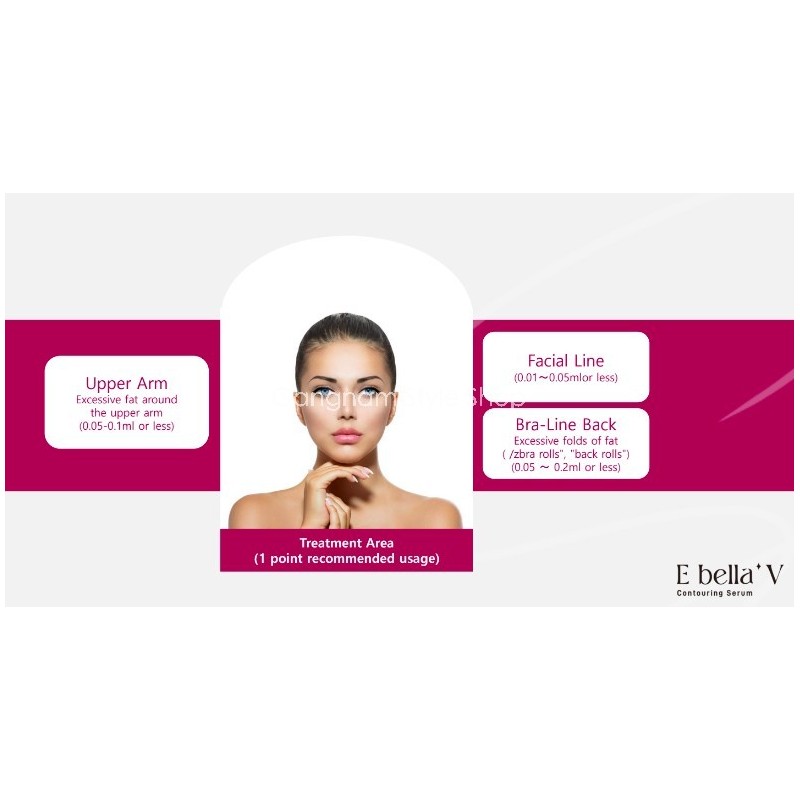 In case of face, 0.01~0.05ml requires injection points at a distance of 1cm apart from each other on a treatment area into the fat layer.