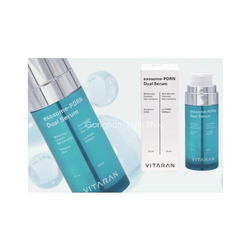 Vitaran exosome pdrn dual serum effectively recovers skin damage and strengthens the skin barrier. It is one of the best skin rejuvenation solution resulting from the collaboration between PDRN and exosome, centella asiatica, Niacinamide and Adenosine.