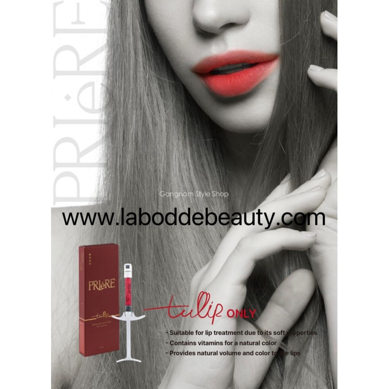 Priere Tulip lip filler is KFDA approval Cross linked formulated Sodium Hyaluronate Gel.